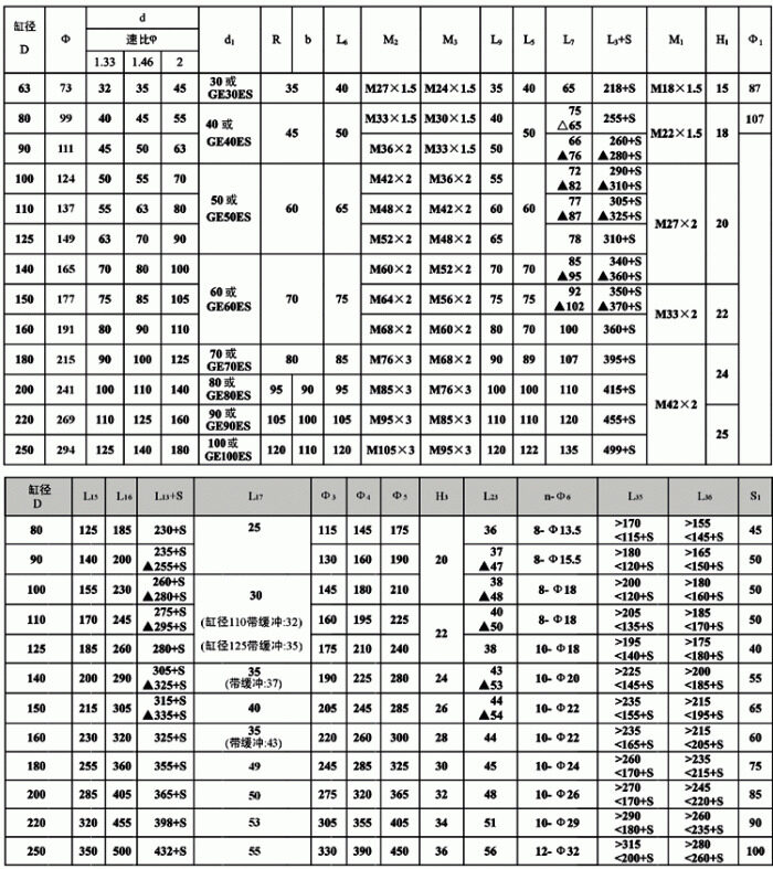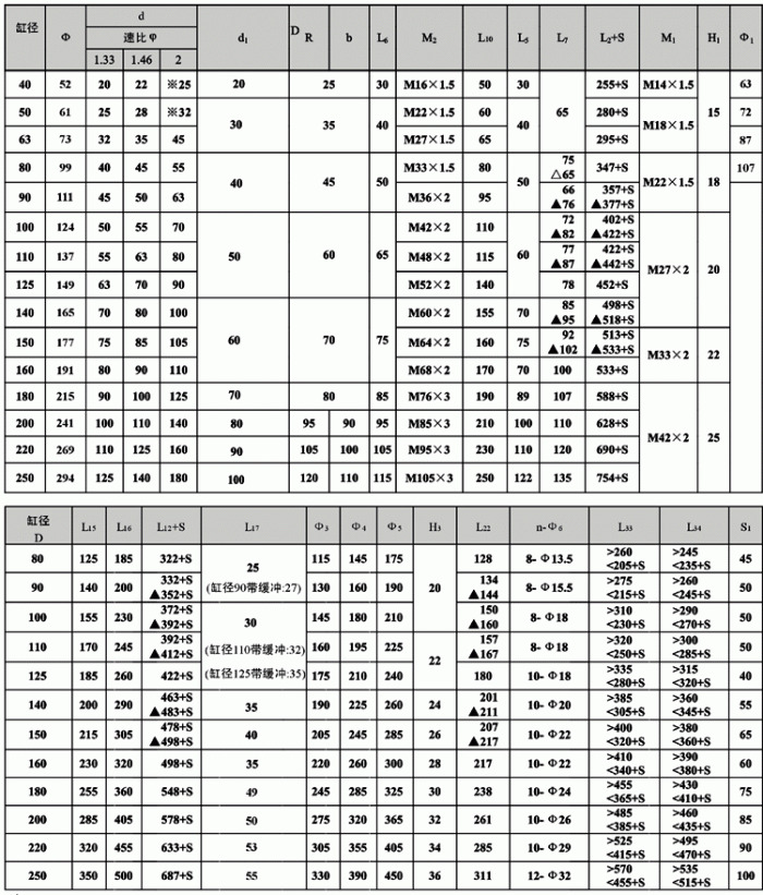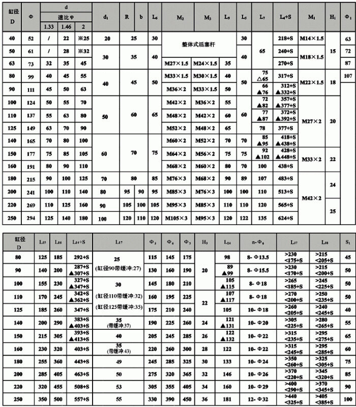 3、用戶所需S大于表中規(guī)定最大行程時(shí),不?;钊麠U穩(wěn)定,應(yīng)通過雙方協(xié)商解決。