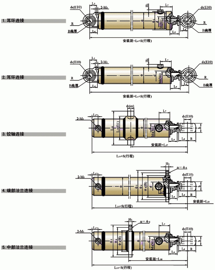 5、鉸軸連接的行程不得小于表中最小行程S1值。
