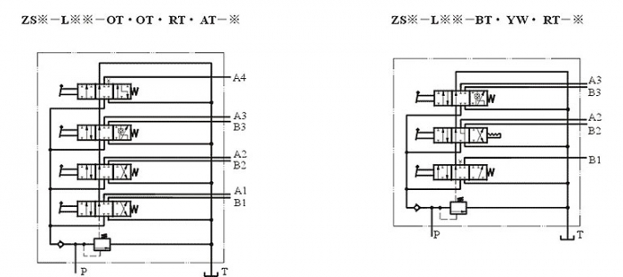 ZS2系列多路換向閥是在ZS1系列基礎(chǔ)上改進(jìn)設(shè)計(jì)的,除具有ZS1系列工作壓力高,結(jié)構(gòu)緊湊,溢流閥性能好,無外漏等優(yōu)點(diǎn)外,各項(xiàng)技術(shù)指標(biāo)均有進(jìn)一步提高。ZS2的油路形式、滑閥機(jī)能及定復(fù)位方式均與ZS1相同。為減小體積尺寸,ZS2系列多路換向閥取消了安裝角鐵,利用進(jìn)、回油閥體上的三個(gè)底腳直接安裝。 |