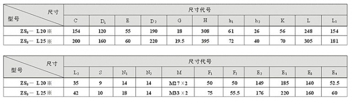 Zs3—L20 、ZS3—L25 外形安裝連接尺寸