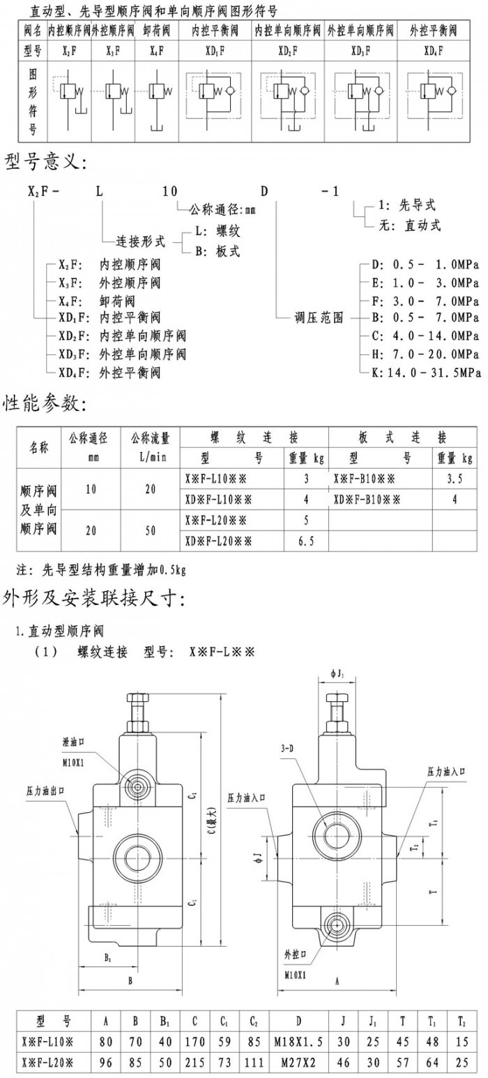 單向順序閥可以防止執(zhí)行機(jī)構(gòu)(例如:垂直油缸及工作機(jī)構(gòu))因自重而自行下滑,起液壓平衡支承作用,故也稱其為平衡閥。