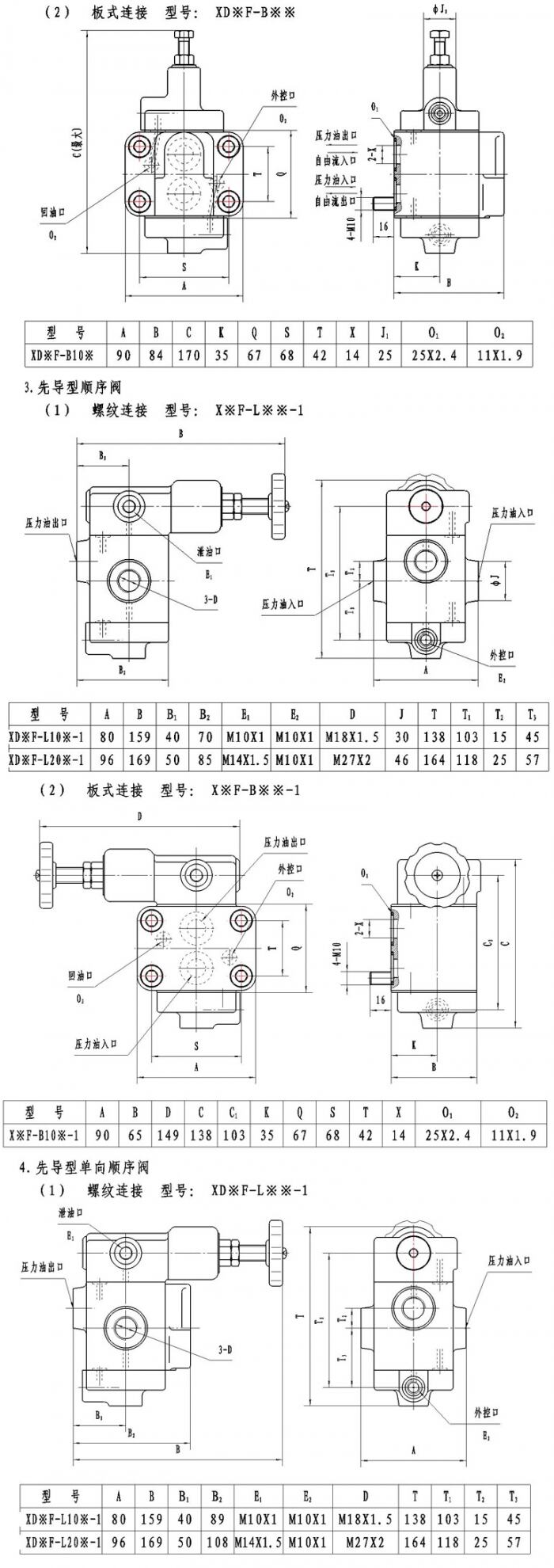 順序閥和單向順序閥,在結(jié)構(gòu)設(shè)計(jì)上分直動(dòng)型和先導(dǎo)型兩種,只需改變其上下蓋的方位,即可組成七種不同作用的閥門,無需改變結(jié)構(gòu)。