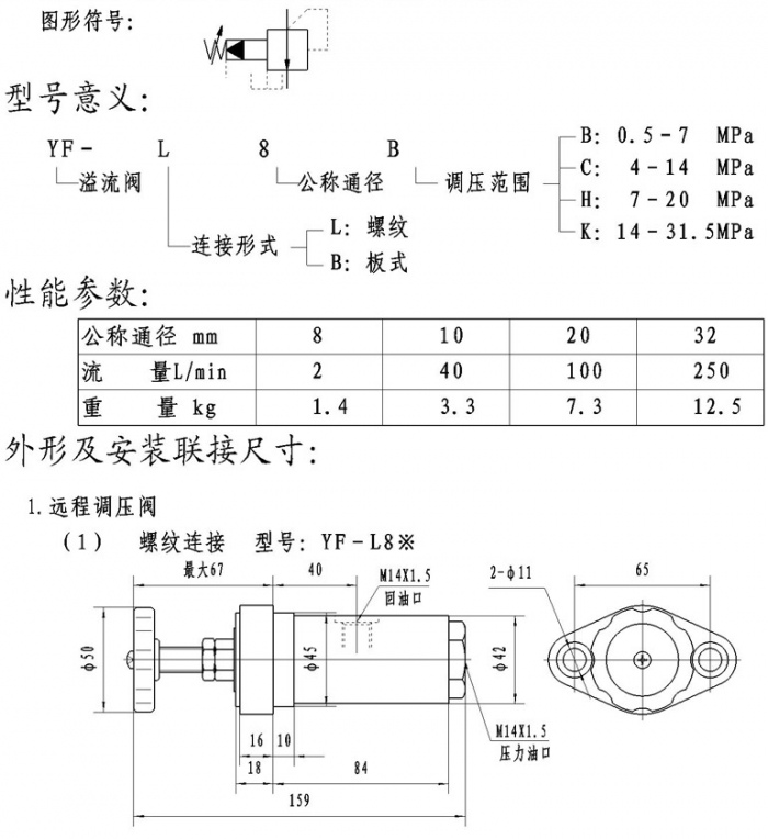 遠程調壓閥是一個小型的直接動作式的溢流閥??梢院鸵缌鏖y的遠控口連接,在主溢流閥壓力設定范圍內實現(xiàn)遠程壓力調節(jié)。